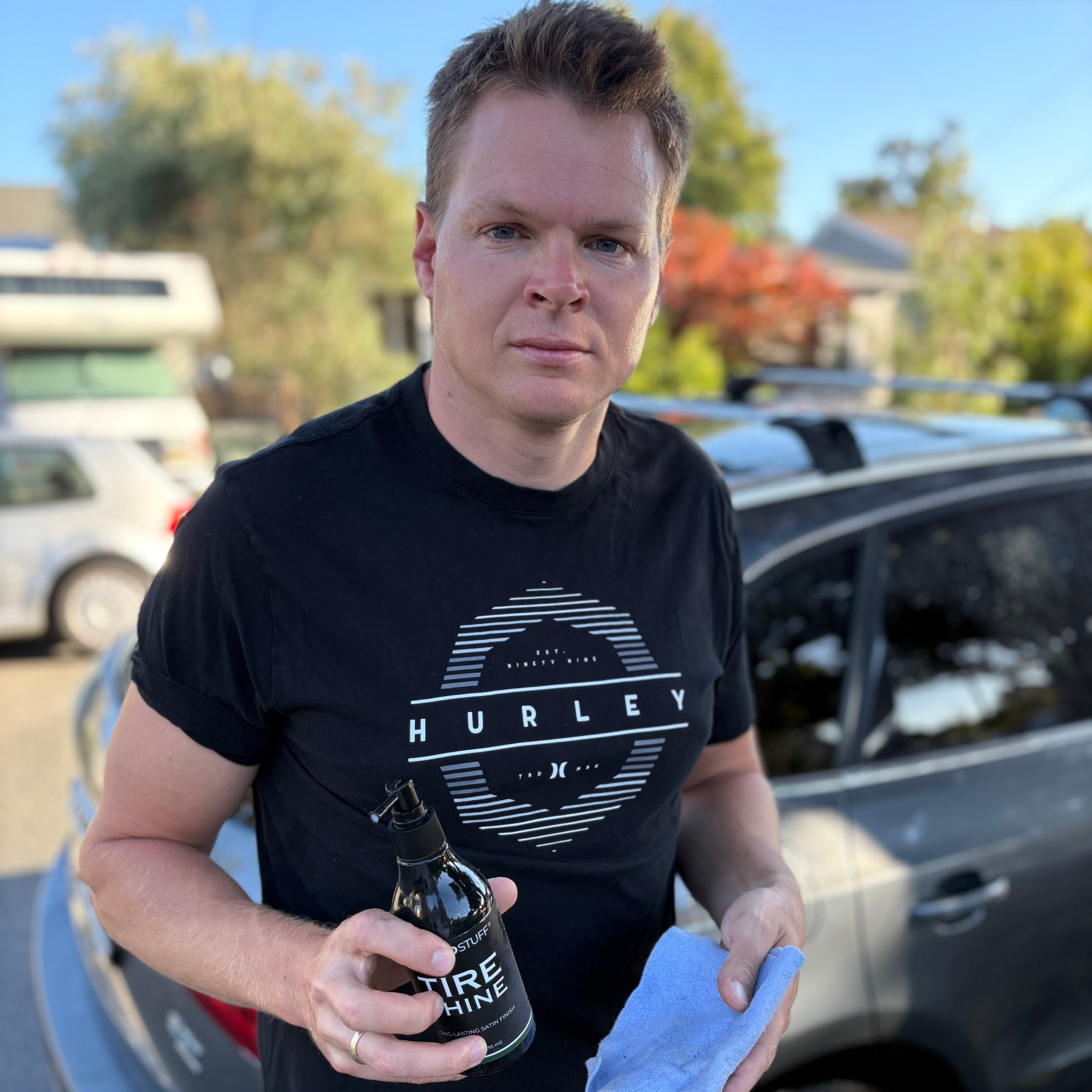 "This gives just the right amount of tire black enhancement that looks natural and clean without being over the top. It enhances the tire's appearance without making it look artificial or overdone, unlike those wet tire dressing products that can be way too shiny.